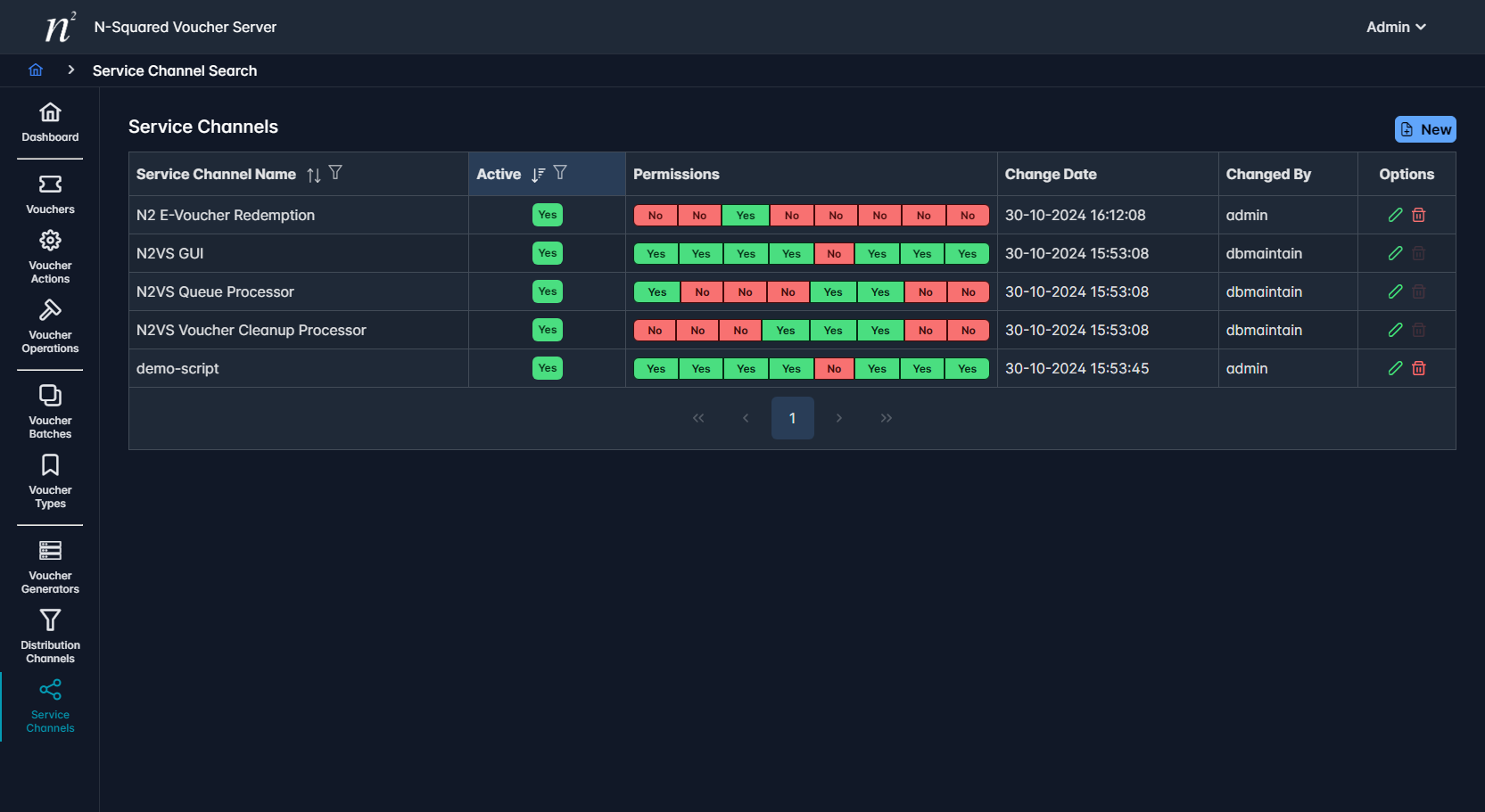 All configured Service Channels will be shown with standard features for searching and sorting available via the table controls.
