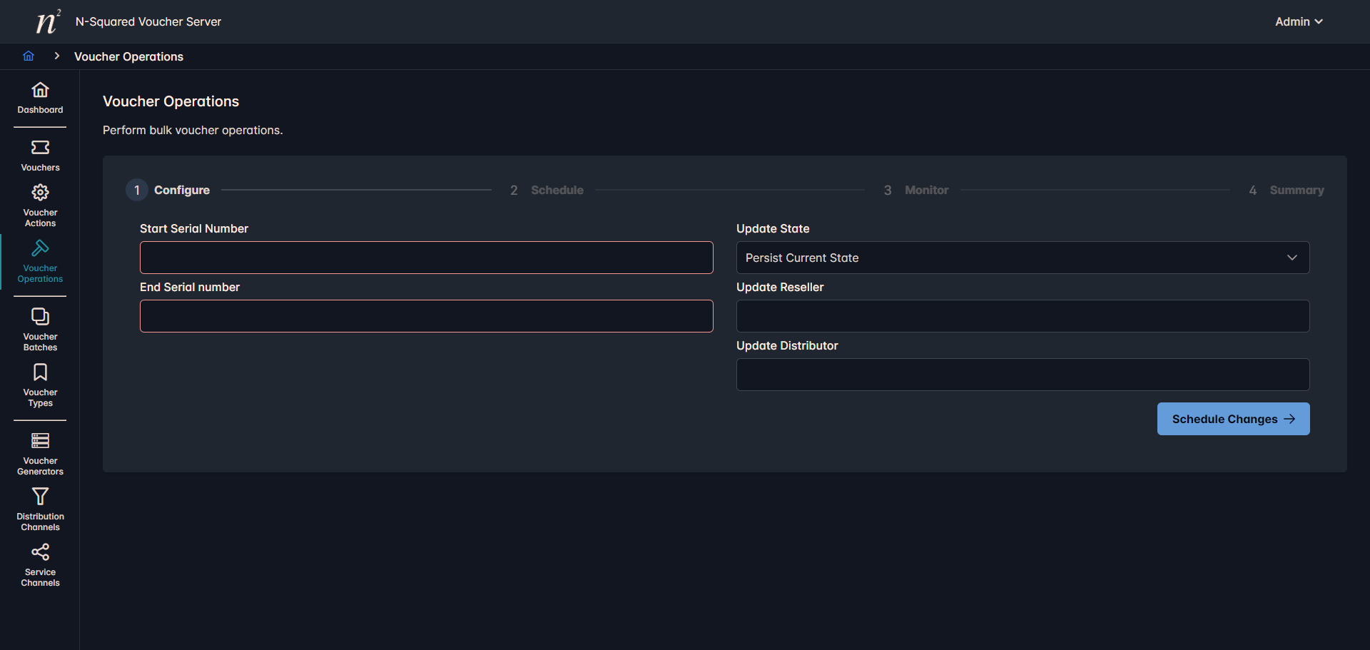 Voucher Operations process changes over a given Serial Number range, changes are applied to any Vouchers that fall within the provided range, however the range itself does not need to contain vouchers for each Serial Number within the range.