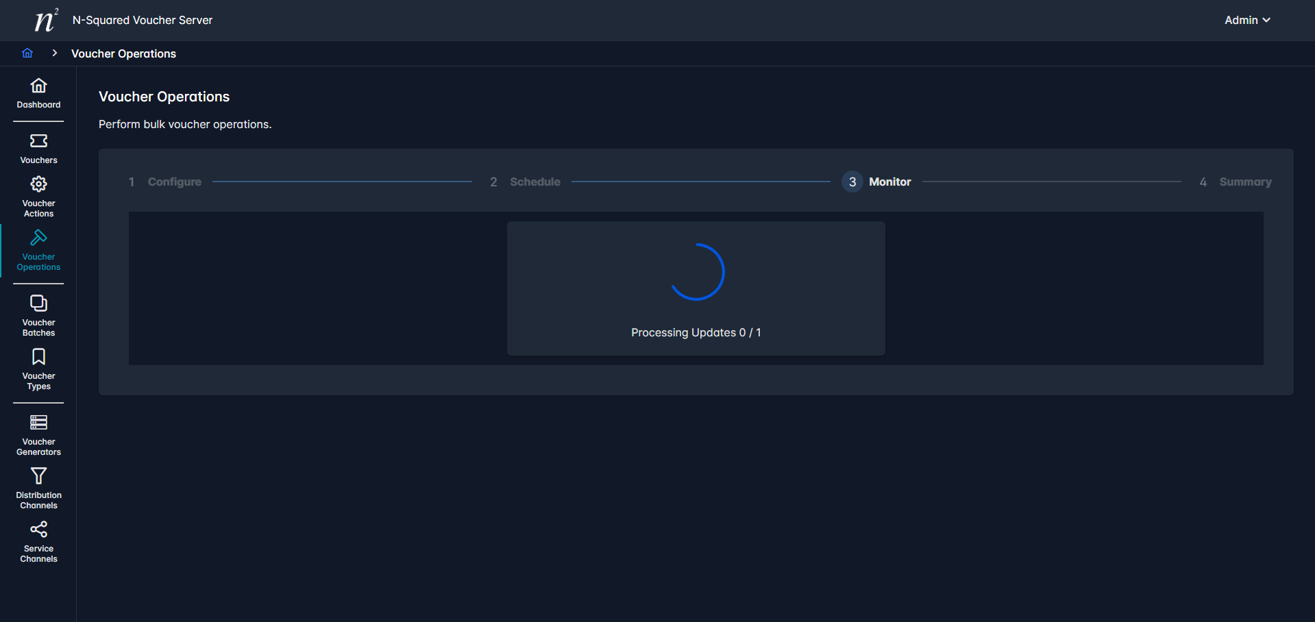 The Voucher Server supports bulk manipulation of Vouchers via the concept of Voucher Operations.